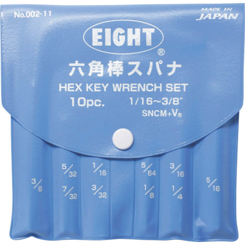 (株)エイト 002-11 エイト 六角棒スパナ 標準寸法 ビニールポーチ入 10本セット 1/16~3/8