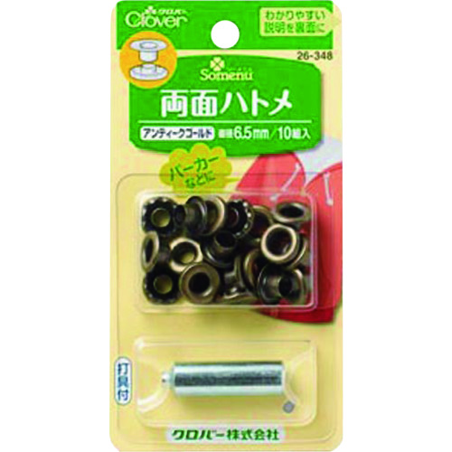 クロバー(株) 26-348 クロバー 両面ハトメ 6.5mm 真鍮 アンティークゴールド 10組入