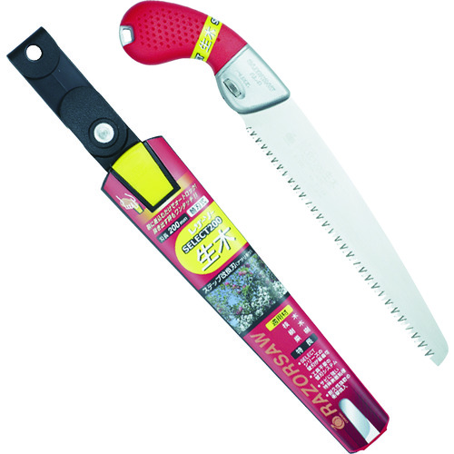 玉鳥産業(株) 品番:154 レザーソー SELECT200生木 特長生木専用タイプです。生木全般(枝木・樹木・果樹)に使用できます。特に太枝切りに最適です。用途生木の剪定。商品スペック仕様・規格衝撃焼入れ無電解ニッケルメッキアサリあり刃長(mm):200全長(mm):300刃ピッチ(mm):2.6~3.5切断能力(mm):200刃幅(mm):35替刃:S154適合替刃:S154材質刃:炭素工
