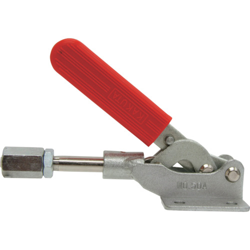 大阪角田興業(株) 品番:KC-50A-2S 角田 横押し型ステンレストグルクランプ No.50A-2S 特長シャフトの先端はおねじになっており、高ナットが付属しています。商品スペック仕様・規格横押型フランジベース全長(mm):151押圧力(kN):2.0ハンドル操作角度(°):190ストローク(mm):30先端部ねじ径:M10付属ナット径:M10取付方法:フランジベース製品刻印:No