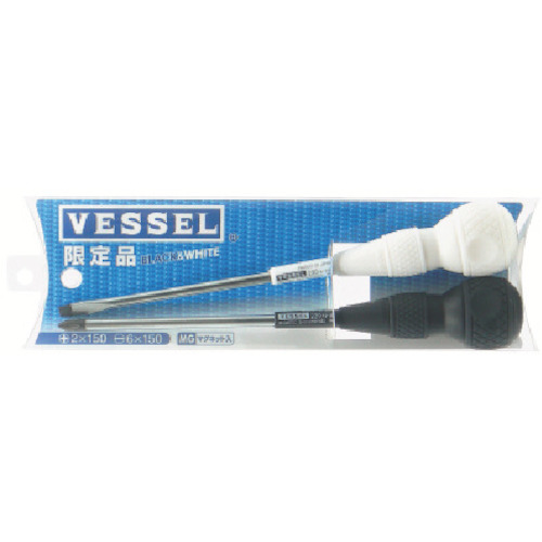 (株)ベッセル JAN:4907587005069 ベッセル ボールグリップドライバー(2本組) BLACK&WHITE 特長限定カラーで、グリップエンドに「+」「-」を表示した限定仕様です。軸部は、高級感のあるニッケルクロームメッキです。また、酷使に強いクロームバナジューム鋼で、全身焼入しています。刃先はメッキ層の影響が少ない高精度ブラックポイント加工です。※限定数量につき無くなり次第廃盤と