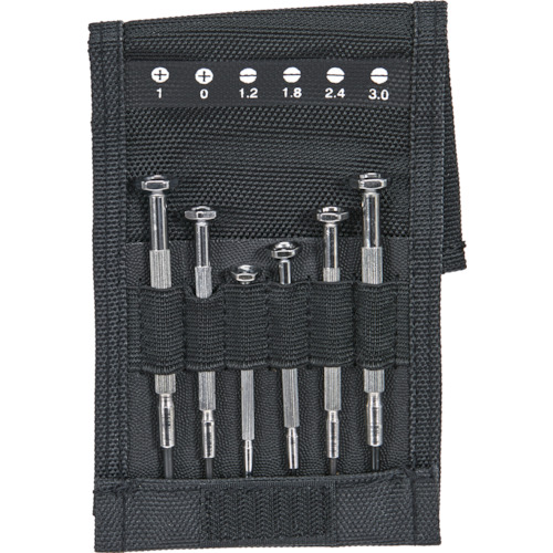 トラスコ中山(株) 品番:TSDA-6S TRUSCO 精密ドライバー 6本セット 特長作業性のよい頭部回転式で、小ねじの早回しに最適です。持ち運びに便利な縫製ケース付です。商品スペック仕様・規格ケースサイズ:100×110×11mm硬度:HRC53~56セット内容(本):6セット内容:TSDA-1.2、TSDA-1.8、TSDA-2.4、TSDA-3.0、TSDA-0、TSDA-1材質ポーチ