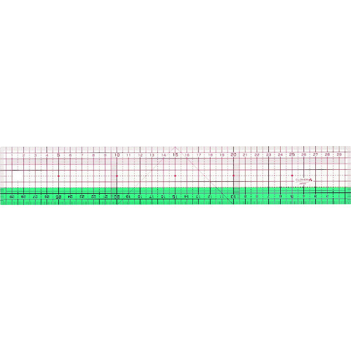 クロバー(株) 品番:25-053 クロバー 方眼定規 30cm 特長適度な柔軟性を持つソーイング定規です。目盛にグリーンゾーンを設けて、濃い色の生地や柄入りの生地の上でも、目盛が読み取れます。縫いしろ付けに利用する10mm~15mmの平行線と特によく使用する12mmの平行線を単独につけています。用途ソーイングやニットの製図、縫いしろ付けに最適な定規です。商品スペック仕様・規格本体厚さ(mm)