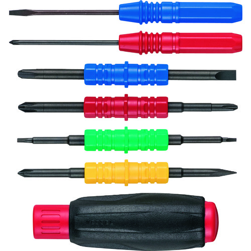 (株)ベッセル 品番:TD-912N ベッセル ファミドラ12ドライバーセット TD-912N 特長1セットで、-2.5、6/+0、1、2×2、3/▲1.9、2.3/角キリ/ヒートン回し/ネジトレーの12通りの使い方ができます。※-2.5/+0は子ハンドルのみで使用してください。玩具などに使われている三角ネジ用ドライバーをセットしています。+2は、太軸と細軸をご用意しています。収納ケースは、ネ