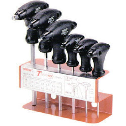 (株)新亀製作所 JAN:4906842230376 サンフラッグ Tグリップレンチスタンド付セット 特長付属で陳列台が付いており、収納に便利です。用途工場内作業、車両整備、機械組み立て、什器組み立てなどに最適です。商品スペック仕様・規格セット内容 6500 2.5、3.0、4.0 6500-L 5.0、6.0、8.0 計6本材質軸部、特殊鋼質量・質量単位-使用条件-注意事項-セット内容・付属