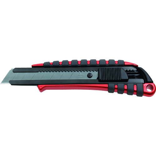 エヌティー(株) 品番:PMGL-EVO1R NT カッターナイフL型 プレミアムG オートロック式 赤 全長157mm 特長ゴム製グリップが付いた金属タイプなので軍手をはめたままでも滑らず作業できます。黒刃標準搭載です。オートロック式スライドです。強靭なアルミダイキャスト製ボディに鮮烈なメタリックレッド塗装。用途厚物切り作業用。商品スペック仕様・規格全長(mm):157刃厚(mm):0.50