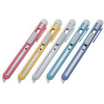 エヌティー(株) 品番:NT-120 NT カッターファンシー 特長カラフルなパステルカラー5色低価格ながら金属フレーム入りで丈夫なボディです。用途事務・軽作業用。商品スペック仕様・規格全長(mm):137刃厚(mm):0.38適合替刃:BA-10P・BA-50P材質本体:ABS樹脂、刃:合金工具鋼(SKS81)質量・質量単位16g使用条件-注意事項-セット内容・付属品-製造国日本小箱入数小箱