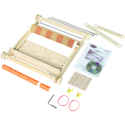 クロバー(株) 品番:57-950 クロバー 手織り機 咲きおり 40cm(30羽セット) 特長古布などお好きな布地を細長く裂いてたて糸に織り込み、自分好みの風合いの布地を楽しむ手織りのひとつとして注目を集めている裂き織りを手軽に作ることができます。毛糸などを使った手織りでも使用できます。持ち運びに便利な取手の付いた箱入りです。長いサイズ(約4mまで)の織りも省スペースで可能です。従来広いスペ