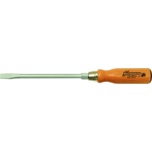 ボンダス・ジャパン(株) 品番:17306W ボンダス 木柄貫通マイナス・ドライバー(六角ボルスター付) 10.0×175 特長手になじむ木製ハンドルを採用しています。スパナでボルスター部を回せば増し締めができます。ブレードがハンドルを貫通しています。用途ネジの締付け、緩め作業に。商品スペック仕様・規格刃先:300全長(mm):13対辺(mm):300先端サイズ(mm):10サイズ:10.0×
