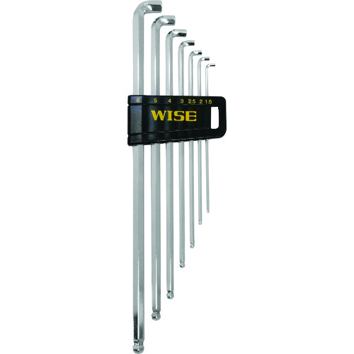 フジ矢(株)(ワイズ) 品番:SBGTL-700 ワイズ ボールポイント剛短レンチ7本セット(ロングタイプ) 特長1.5~6.0mmの7本セットです。曲げ加工部分はWISE独自の熱間曲げ加工法式を採用しております。曲げる際に熱することで、材料が不均質になるのを防ぎ、靭性を保ちながら最高レベルの強度を維持しています。材料には特殊合金鋼を用い、均質で最高精度の硬度を確保しています。手間のかかる密閉