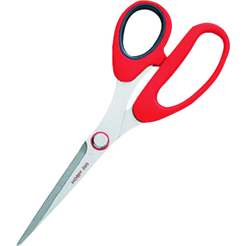 クロバー(株) 品番:36-624 クロバー ステンレスはさみ ホビー200 特長手に優しく、長時間使っても負担が少ないはさみです。親指を入れる内側にソフトリングを使用しています。厚くて丈夫な刃は薄い生地も厚い生地も同じ調子でシャープに切れます。ねじが大きくガタツキを防ぎ確実な切れ味です。用途布の裁断に。商品スペック仕様・規格刃長(mm):84刃厚(mm):2.5全長(mm):200色:柄:赤