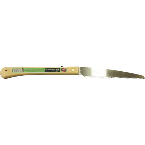 浅香工業(株) 品番:153332 金象 宝長久 折込鋸 210 普通目 特長鋸身は、焼入鋼帯を使用し、刃先に衝撃焼入れを施すことにより、硬度・切れ味・持続性がアップします。グリップ部はサクラ材にニス塗を施しています。用途生木の剪定、工作等。商品スペック仕様・規格全長480mm刃の長さ210mmグリップ長さ255mmグリップ厚み17mm(折込時 全長260mm&times幅50mm&times