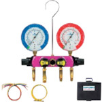 A-Gas Japan(株) 品番:FS-708A-2 FUSO 4バルブマニホールドキット 特長4つのボールバルブと4つのポート設計により、真空引き→気密テスト→充填の一連作業をホースのつなぎ替なしで簡単スムーズに行えます。用途冷凍空調設備の冷媒ガスの充填回収に。商品スペック仕様・規格低圧連成計(MPa):-0.1~3.8高圧連成計(MPa):-0.1~5.5接続口径:5/16フレア 真空引