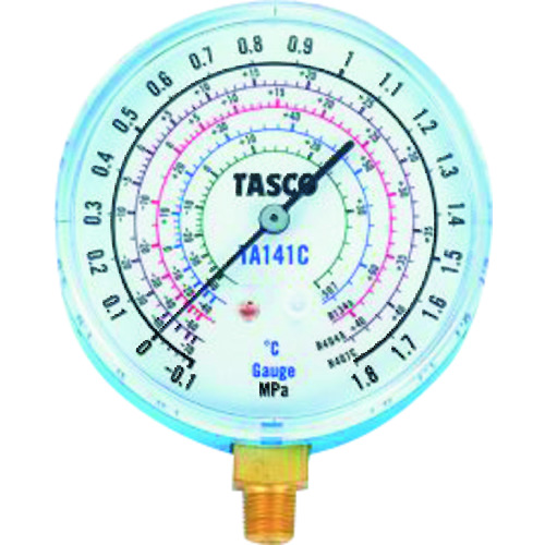 (株)イチネンTASCO 品番:TA141C タスコ 圧力計/連成計 特長必要に応じて校正証明書も取得可能(別途費用)※製品詳細はP.66をご参照ください。商品スペック仕様・規格TA140C…圧力計TA141C…連成計TA141C-1…冷暖兼用型連成計。ゲージ外径80φ(目盛盤75φ)。R404A、R407C、R507A、R134a飽和温度目盛付。ゲージ取付ネジ径…1/8″NPT。振動吸収機能