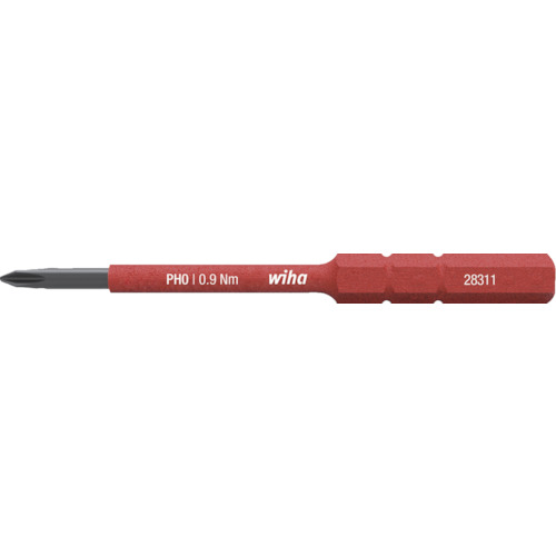 wiha社 品番:2831110 wiha 絶縁スリムバリオ 差替式ビット PH0 特長ビットは保護絶縁体がブレード自体に組み込まれたスリムデザインです。スリムバリオシリーズのハンドルすべてに互換性があり自由に差替可能です。用途絶縁の求められるネジ締め作業に。商品スペック仕様・規格1000V絶縁仕様欧州規格IEC60900適合品刃先:(+)0全長(mm):75シャンク径(mm):6材質クロムバ