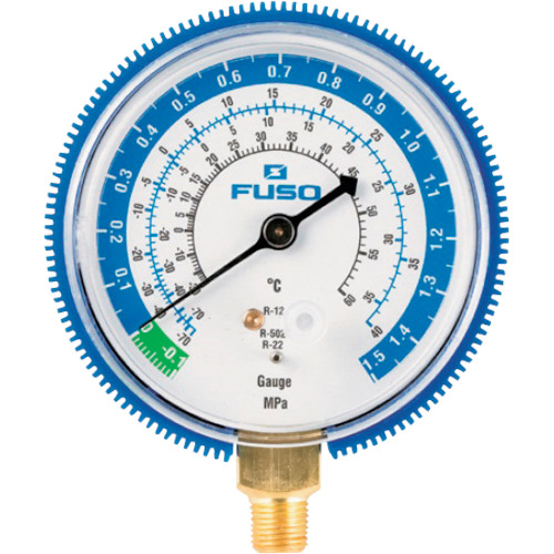 A-Gas Japan(株) 品番:FS-712BL FUSO 低圧ゲージ 特長R22・R12・R502冷媒飽和温度目盛付です。振動吸収機構タイプで数値が読み取りやすいです。用途マニホールドのゲージ交換用に。商品スペック仕様・規格R22、R12、R502用マニホールド低圧ゲージ圧力表示(MPa):-0.1~1.7取付ねじ:1/8NPTゲージ径(φmm):68材質-質量・質量単位116g使用条件
