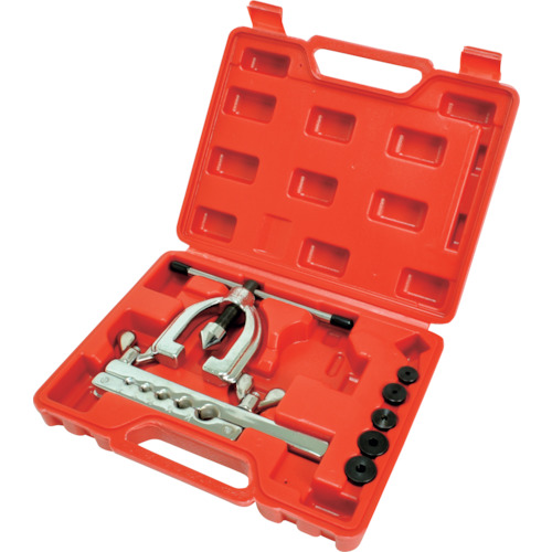 (株)ワールドツール 品番:2007000011423 アストロプロダクツ パイプフレアリングツールキット 特長ブレーキパイプの先端に、フレア、ダブルフレア加工ができる、パイプフレアリングツールです。クランプの内側部には凹凸加工が施され、しっかりとパイプを保持します。保管に便利なケース付きです。商品スペック仕様・規格適用パイプ径:1/2、3/8、5/16、1/4、3/16適合材質:銅フレア角度