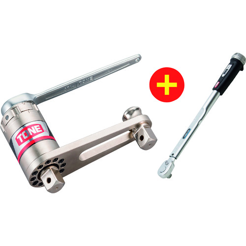 TONE(株) 品番:20FBP150A TONE 強力パワーレンチセット 特長数量限定セット。強力パワーレンチにトルクレンチが付いたセットです。倍力機構により、少ない力で狭い作業環境でも高トルクを出力できます。用途大型ボルト・ナットの締付け、緩め作業用。商品スペック仕様・規格P150A+T4MN100-QLのセット材質-質量・質量単位5.4kg使用条件-注意事項-セット内容・付属品ラチェット