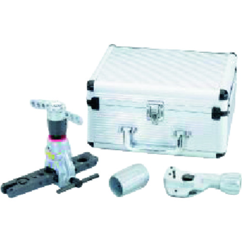 (株)イチネンTASCO 品番:TA55JT-2 タスコ ラチェットハンドル式フレアツール 特長ラチェットハンドル方式なので手が疲れず簡単にフレア加工ができます。<TA55JT-2セット内容>・フレアツール(TA550J)・チューブカッター(TA560A)・リーマー(TA530)・専用アルミケース(TA550CS-2)商品スペック仕様・規格適合サイズ:1/4″・3/8″・1/2″・5/8″・3
