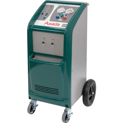 アサダ(株) 品番:AR022A アサダ エコサイクルオーロラ2 特長世界初の帯電分離技術を採用し、冷媒を新品同様に再生します。液状冷媒を直接吸引し、液状でボンベに充填するため、R410Aなどの混合冷媒において組成の変化を最小限に抑えることが可能です。大型の車輪とキャスターが付き、どのような現場へも運搬が可能です。アワーメータ付き(リセット不可)で、AR水分吸着剤の交換時期の管理が可能。用途フ