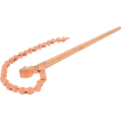(株)ハマコS.S 品番:CBCW-100 HAMACO チェーンレンチ 特長摩擦や衝撃を加えても火花が出ない工具です。無発火性の他、非磁性や耐蝕性にも優れています。米国認定機関 FMApprovals認定取得済みです。UKAS(ユーカス、英国認定証機関認定審議会)を認定取得済みです。用途化学工業、石油、製鉄、ガス産業、爆薬製造工場、造船所、航空業界、船舶搭載用、火力発電所、製薬工場、アルミ精
