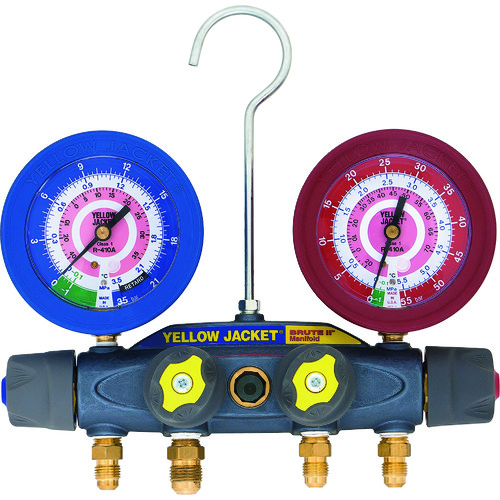 アサダ(株) 品番:Y4093832C アサダ R32・R410A用ブルート2マニホールドキット ケース付 特長真空引時間を最大50%、回収時間を最大20%短縮できる3/8”のボア径(本体内径)&真空ポートを搭載しています。ダブルOリングバルブ採用で気密性抜群です。R410A耐用の高品質ナイロンパッキンを採用しました。スライド式でピストンの交換が簡単です。強度と耐久性に優れた軽量アルミ鍛造ボデ
