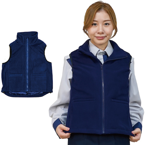 (株)岡潮 品番:OK40211_WEAR_3L 岡潮 手洗い洗濯できるフリースUSB電熱ベスト40211 (ウェアのみ) 3L 特長発熱配線に東レの高性能炭素繊維トレカ糸を採用し、素早い熱の伝導性を高めるとともに、安定した発熱により安全性を高めたシックなデザインの発熱ベストになります。保温性の高いフリース素材を採用することで、見た目にもカジュアルな着心地を実現。両脇は伸縮性に富んでおり、動作