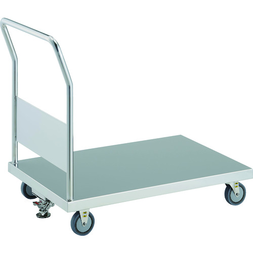 トラスコ中山(株) 品番:KAS-1-100DU-S TRUSCO 抗菌ステンレス天板台車 1200X750 φ100DU ストッパ付 特長抗菌ステンレスを天板部分に使用しているので衛生管理の厳しい現場に最適です。荷台にしっかりと補強の入った、板厚1.5tの頑強な溶接式のSUS304製台車です。キャスターもSUS金具ですので、食品工場やクリーンルームで使用できます。用途食品工場、研究所など。商
