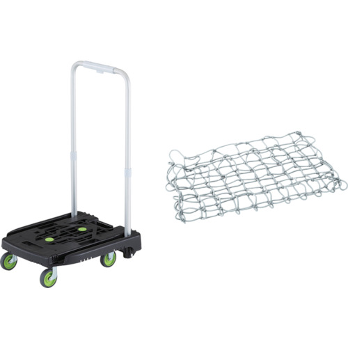 トラスコ中山(株) 品番:WP-2-BKCP TRUSCO アイドルキャリー weego ブラック おまけ付 特長TRUSCO アイドルキャリー weegoに、荷崩れ防止ネットがついてくるキャンペーン品です。伸縮ハンドルのためコンパクトに収納できます。φ75省音キャスター採用で音が静かです。エラストマー樹脂車輪の採用で、従来のゴム車輪と比較して反発性が高く、軽く動きます。またタイヤ痕がつくのを