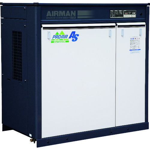 北越工業(株) 品番:SMS22ER-5E 北越 スクリューコンプレッサ ドライヤ無 屋外仕様 22KW 50Hz 特長高効率モーター対応です。油冷式です。レギュレータ制御+省エネ機構です。(パージ制御+自動発停)レギュレータ制御で吸入空気量を0~100%まで無段階で容量制御します。パージ制御で消費空気量が減少するとパージ運転(圧縮空気放出)開始し動力を低減します。自動発停で消費空気量が約20
