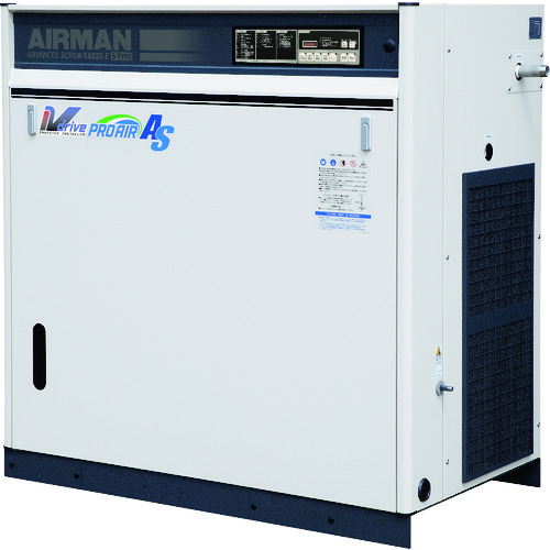 北越工業(株) 品番:SAS22V-E 北越 スクリューコンプレッサ ドライヤ無 22KW 特長高効率モーター対応です。油冷式です。インバータ制御+省エネ機構です。(A.C.C.S+パージ制御+自動発停)インバータ制御で消費空気量に応じて回転速度を自動制御し省エネを図ります。A.C.C.S.で消費空気量に応じてパージ開始圧力PHを自動的に変化させ、頻繁に容量制御するのを防止し省電力を図ります。