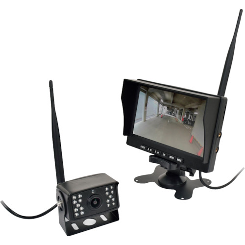 サンコー(株) 品番:S-WTB21B サンコー 12、24V対応ワイヤレス死角カメラ録画機能付 特長モニターとカメラの接続はワイヤレスです。使用可能距離は100mまでなので、大型トラックや重機でも取り付け可能な録画機能付きカメラです。目視だけではカバーできない重機の死角をなくし、接触事故を未然に防ぐサポートをします。赤外線ライトを18灯搭載しているので、夜でもしっかりモニタリングができます。