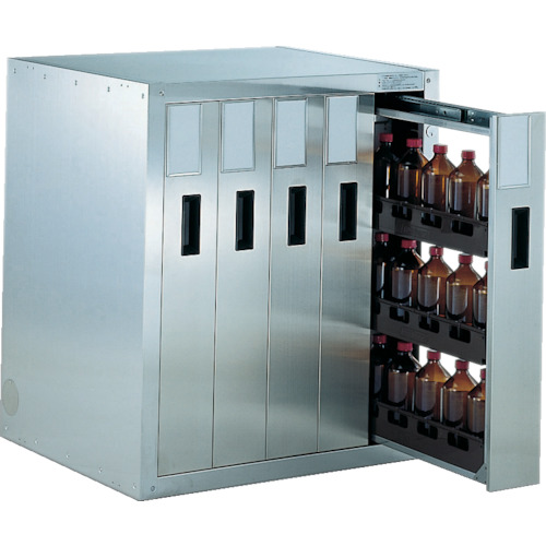 トラスコ中山(株) 品番:TK-5 TRUSCO 耐震薬品庫 705X600XH800 5列引出型 特長1列の引き出しに500ml薬びん15本収納できます。地震などの不慮の事故での二次災害を防ぎます。取手は薬品に強いABS樹脂製です。オールロック機構、転倒防止機構、ラッチ機構付です。1列の引出しに500ml薬ビン15本収納できます。商品スペック仕様・規格引出し内寸:間口109×奥行472×高さ