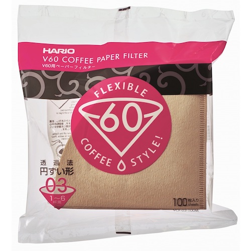 ハリオサイエンス(株) 品番:VCF-03-100M HARIO V60用ペーパーフィルター03M 100枚入り 特長V60シリーズペーパーフィルターです。03タイプ(1~6杯用)のペーパーフィルターです。材質はパルプ100%のみさらし仕様です。商品スペック仕様・規格色:ブラウン3袋100枚入材質天然パルプ質量・質量単位160g使用条件-注意事項-セット内容・付属品-製造国日本小箱入数小箱入数