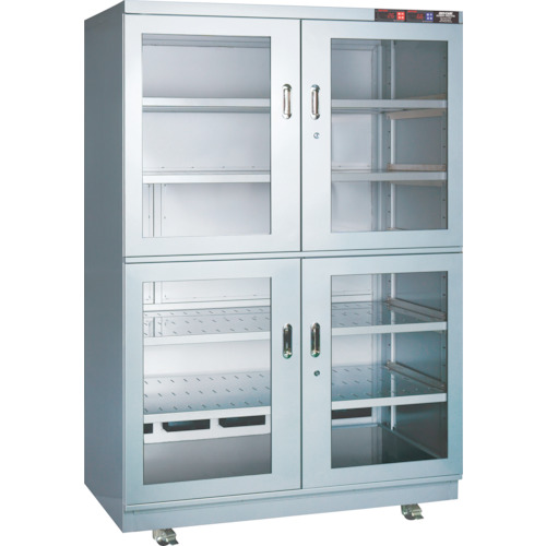 トーリ・ハン(株) 品番:TDC-1432-DD トーリハン ドライキャビ 特長超低湿度 高速除湿型(1%RH以下)デジタルタイプです。商品スペック仕様・規格中湿度標準型デジコンコントロール本体内寸(mm)間口:1130本体内寸(mm)奥行:650本体内寸(mm)高さ:1830容量(L):1261庫内湿度(%RH):25~50電源(V):単相100棚板数(枚):5色:シルバーメタリック消費電