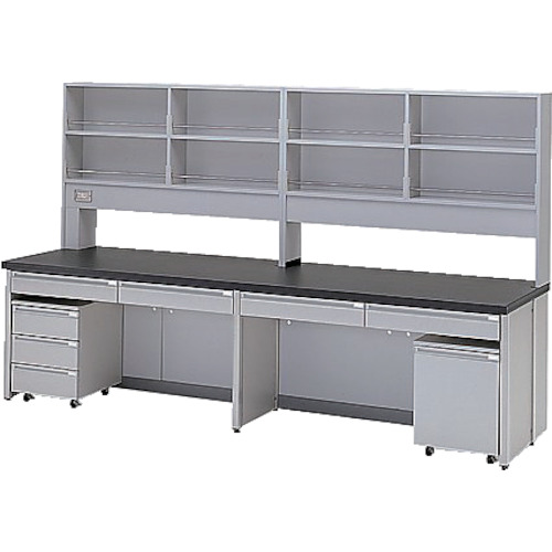 アズワン(株) 品番:3-5836-03 AS サイド実験台HTK-3000 商品スペック仕様・規格天板:セルロン、エッジ/PP(ポリプロピレン)45mm仕上げ本体:両面メラミン化粧パーチクルボード、フレーム/スチール角パイプ(メラミン焼付塗装)、天板下/1段引出し付き、脚部/レベルアジャスター付きサイズ(mm):3000×750×800/1800均等耐荷重:約150kg重量(目安・kg):約