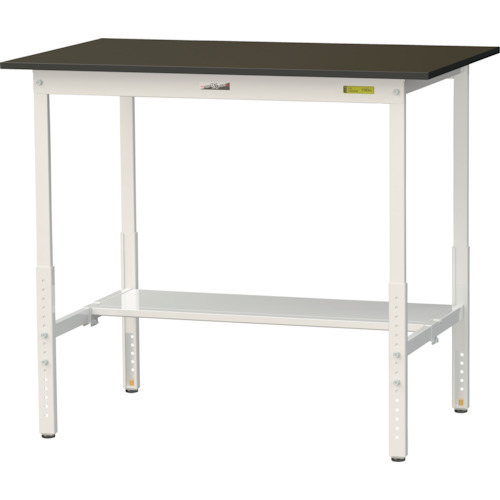 山金工業(株) SLMAH-1275T-BRW ヤマテック ワークテーブルLABシリーズ 高さ調整タイプH900~1200mm 半面棚板付 指紋レスメラミン天板 W1200×D750