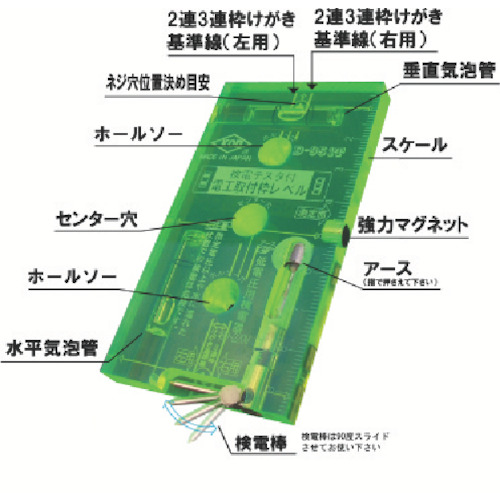 (株)アカツキ製作所 JAN:4993711584647 KOD 電工取付枠レベル 特長1連~3連までけがきができます。検電テスター付です。強力マグネット付です。文字が消えません。薄型で使いやすいです。商品スペック仕様・規格寸法(mm):95×51×8材質アクリル樹脂質量・質量単位-使用条件-注意事項-セット内容・付属品-製造国-小箱入数小箱入数とは、発注単位の商品を小箱に収納した状態の数量で