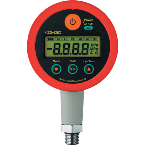 (株)クローネ KDM30-70MPAG-B-RE クローネ 高精度デジタル圧力計 KDM30 ゲージ圧 電池駆動(9V) 赤