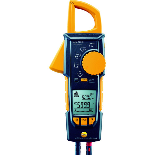 (株)テストー 品番:TESTO770-3 テストー クランプメーター 特長垂直開閉式ジョータイプです。突入電流測定に適しています。最大/最小/平均値表示機能付きです。温度測定可能です。Bluetooth機能付きです。用途電気保全設備。商品スペック仕様・規格検波方式:真の実効値整流(RMS)最大表示:6000カウント温度(℃):-20~+500抵抗レンジ(Ω):60~60M同梱品:本体、乾電池