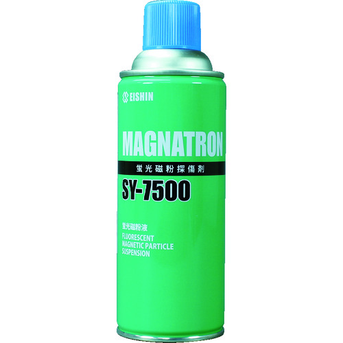 栄進化学(株) 品番:SY-7500-AE EISHIN マグナトロン 蛍光磁粉液 SY-7500 エアゾール 特長蛍光磁粉を油(マグナトロンオイル)に適性量分散した磁粉液をエアゾール缶に充填していますので、検査面に吹き付けて適正な検査ができます。均一な磁粉粒子が添加されていますので、検査精度が向上します。溶接部検査だけでなく、航空機部品用検査、各種部品の準精密検査用としても幅広くご使用いただ