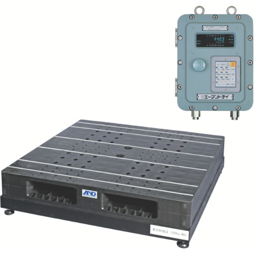 (株)エー・アンド・デイ 品番:SN1200KFP A&D 耐圧防爆構造パレット一体型デジタル台はかり 特長パレット一体型台はかり。フォークリフトで簡単に運搬可能です。倉庫など暗所でも見やすい蛍光表示管です。高性能A/Dコンバータ、100回/秒の高速サンプリング。インタフェース別売(RS-232C、RS-422/485、アナログ出力)。5種類の切り出し計量モードと4種類の選別モードの設定が可能