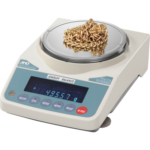 (株)エー・アンド・デイ 品番:FX1200GD-00J00 A&D 宝石・貴金属用天びん FX1200GD JCSS校正付 特長貴金属加工・製造に最適!ゴールド測定用電子天びんです。省スペース設計のB5サイズです。統計演算機能付きです。計量皿の材質:SUS304です。g・個数・%・カラット・もんめ(真珠計量用単位)モードです。RS-232C標準装備(D-sub9Pオス)です。WinCT使用可