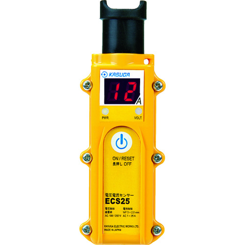 春日電機(株) 品番:ECS25 春日電機 カレンナビ 特長1台で電流と電圧検知ができます。VVFケーブル被覆の上から手軽に測れる検知可能な電圧電流センサーです。アタッチメント装着によりVVF2芯の電圧/電流検知も可能になりました。商品スペック仕様・規格検知対象電線:低圧用被覆線・裸線検知対象電圧:単相AC100V/200V(40V以上で動作)表示:赤色LED及び断続ブザー電源(V):単4乾電