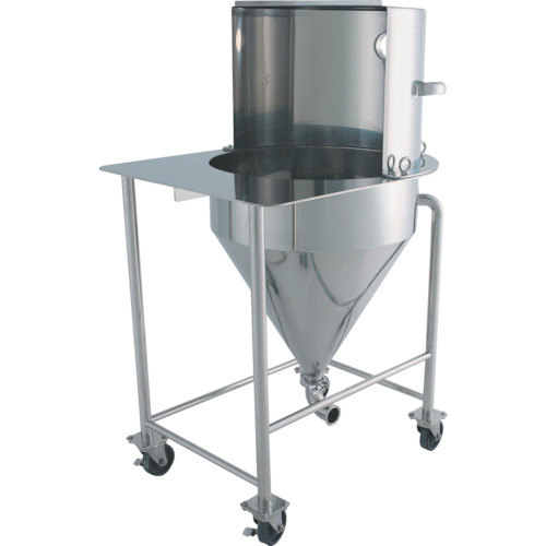 日東金属工業(株) 品番:HTD-L-47 日東 集塵フード付ホッパー 脚付 60L 特長集塵機・空気輸送機と組み合わせて、粉体投入時に舞い上がる粉を回収できる容器です。ホッパーサイズに合わせた大きなフードで効率よく集塵できます。比重が軽く投入時に舞う粉体の投入に最適です。粉体投入後の清掃時間短縮・作業場の衛生環境向上が可能です。フードは集塵機へ接続、排出口(ホッパードレン)は空気輸送機に接続