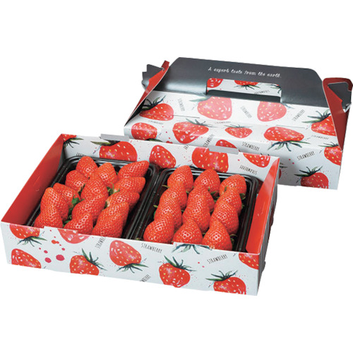 (株)折兼 品番:553649 パックスタイル PS手提箱 イチゴ 2Pポップホワイト 特長イチゴ容器2個入ります。持ち帰り・ディスプレイ2通りの使い方ができます。爪がついて段積みが可能で組み立てが簡単です。中の容器選定に注意してください。一部入らない品種があります。商品スペック仕様・規格外形寸法(mm)幅:290外形寸法(mm)奥行:205外形寸法(mm)高さ:60材質コートボール紙質量・質