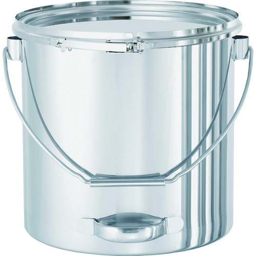 日東金属工業(株) 品番:CTLBD-27 日東 吊り下げ式下部取っ手付密閉容器(バンド式) 特長ツル(吊り下げ用の取っ手)の付いた丸型ステンレス容器です。中身を空ける際に下部の取っ手を掴むことで容器を楽に傾けられます。パッキン付きの密閉式で内容物の飛散を防止し、ホコリ等の混入を防ぎます。底の角は、汚れが溜まりにくいR構造です。用途液体・粉体等の貯蔵・移動・排出用に。商品スペック仕様・規格容器