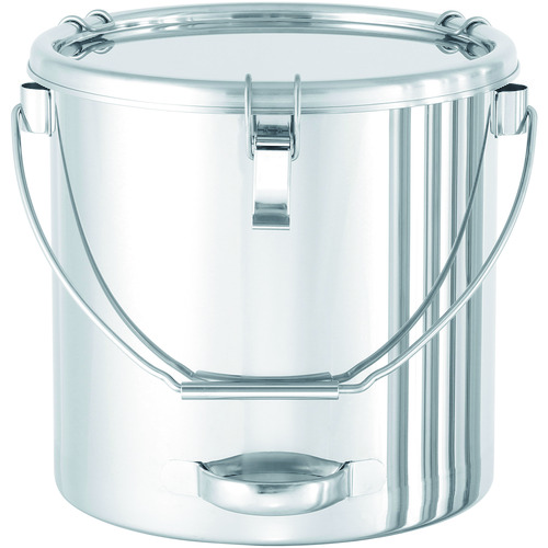 日東金属工業(株) 品番:CTBD-PTFE-18 日東 吊り下げ式下部取っ手付密閉容器(クリップ式/PTFE) 4L 特長ツル(吊り下げ用の取っ手)の付いた丸型ステンレス容器です。中身を空ける際に下部の取っ手を掴むことで容器を楽に傾けられます。パッキン付きの密閉式で内容物の飛散を防止し、ホコリなどの混入を防ぎます。底の角は、汚れが溜まりにくいR構造です。用途液体・粉体等の貯蔵・排出用に。商品