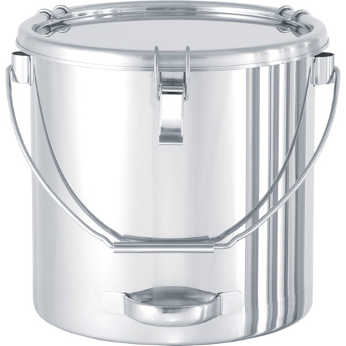 日東金属工業(株) 品番:CTBD-30 日東 吊り下げ式下部取っ手付密閉容器(クリップ式) 20L 特長ツル(吊り下げ用の取っ手)の付いた丸型ステンレス容器です。中身を空ける際に下部の取っ手を掴むことで容器を楽に傾けられます。パッキン付きの密閉式で内容物の飛散を防止し、ホコリなどの混入を防ぎます。底の角は、汚れが溜まりにくいR構造です。用途液体・粉体等の貯蔵・移動・排出用に。商品スペック仕様