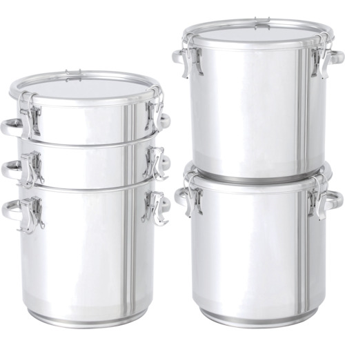 日東金属工業(株) 品番:TP-CTH-STA-30 日東 積み重ね式テーパー型密閉容器 20L 特長スタッキング、ネスティングが可能なので省スペース化が可能です。底自体に段を付けることで段積みと積み重ね収納を可能にしたテーパータイプのステンレス容器です。底とクリップが干渉せずスタッキングとネスティングができ、省スペースになります。密閉式ですので内容物の飛散を防止し、外からのホコリ等の混入を防